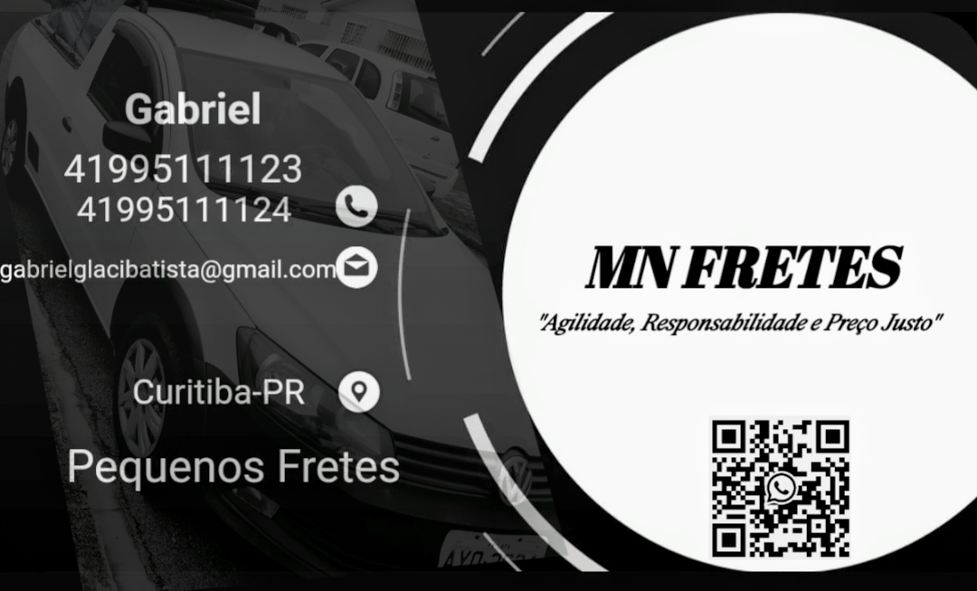QUANDO PRECISAR DE PEQUENOS FRETES E CARRETO ANOTA AÍ! TIRA PRINT! OU MANDE UM OI NO WHATSAPP PELO LINK PARA SALVAR O NOSSO CONTATO CONTATO (41)995111123 GABRIEL HTTPS://WA.ME/QR/ALQ2N57OKVUOP1 MN FRETES " AGILIDADE, RESPONSABILIDADE E PREÇO JUSTO " AGORA VOCÊ NÃO VAI MAIS PRECISAR FICAR PESQUISANDO, POIS AQUI VOCÊ VAI ENCONTRAR O MELHOR PREÇO DE CURITIBA E REGIÃO ATENDEMOS FINAL DE SEMANA E FERIADO @DESTACAR