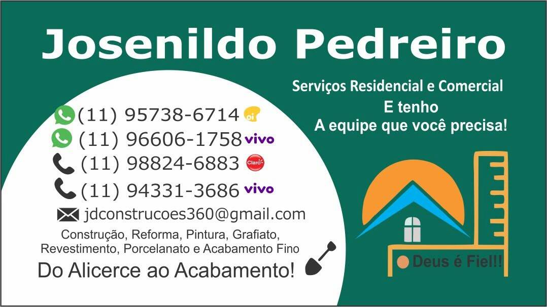 SOU PROFICIONAL NA AREA DE CONSTRUCAO ,FACO TUDO DES DE O ALICERCE AO ACABAMENTO FINO , FACA SEU ORCAMENTO 11957386714 OU 1196606758 FACO FUNDACAO... ALVENARIA.. REBOCO..PINTURA ..GRAFIATO.. TEXTURA... MASSA CORRIDA ...GESSO ENTRE OUTROS GARANTO QUALIDADE NO MEU TRABALHO E UM BOM PRECO!