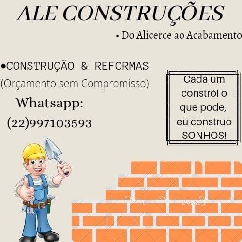 TRABALHAMOS COM CONSTRUCOES E REFORMA GERAL E MANUTENCAO FACA SEU ORCAMENTO GRATIS E PARCELAMOS SUA OBRA ATE EM DOZE VEZES FACA UMA CONSULTA A MAIS DE 16 ANOS COM O COMPREMENTIMENTO COM O CLIENTE E COM AGILIDADE E PRINCINPALMENTE COM A QUALIDADE DO TRABALHO A SER REALIZADO POR ISSO E O SEU SUCESSO