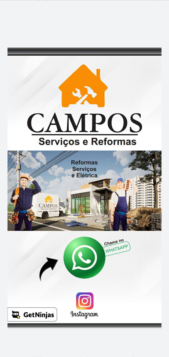 (11) 9 9479-4814TRABALHO COM REFORMAS E CONSTRUÇÕES, COM GARANTIA E QUALIDADE GARANTIDA. TRABALHAMOS COM EXCELÊNCIA Á MAIS DE 20 NO MERCADO. PEQUENA EMPRESA FAMILIAR, COM PREÇO JUSTO E ORÇAMENTO SEM COMPROMISSO. FAZEMOS : TELHADOS /PISOS/FORRO CONVENCIONAL OU GESSO E DRY WALL/PORCELANATO/ENCANAMENTO ...