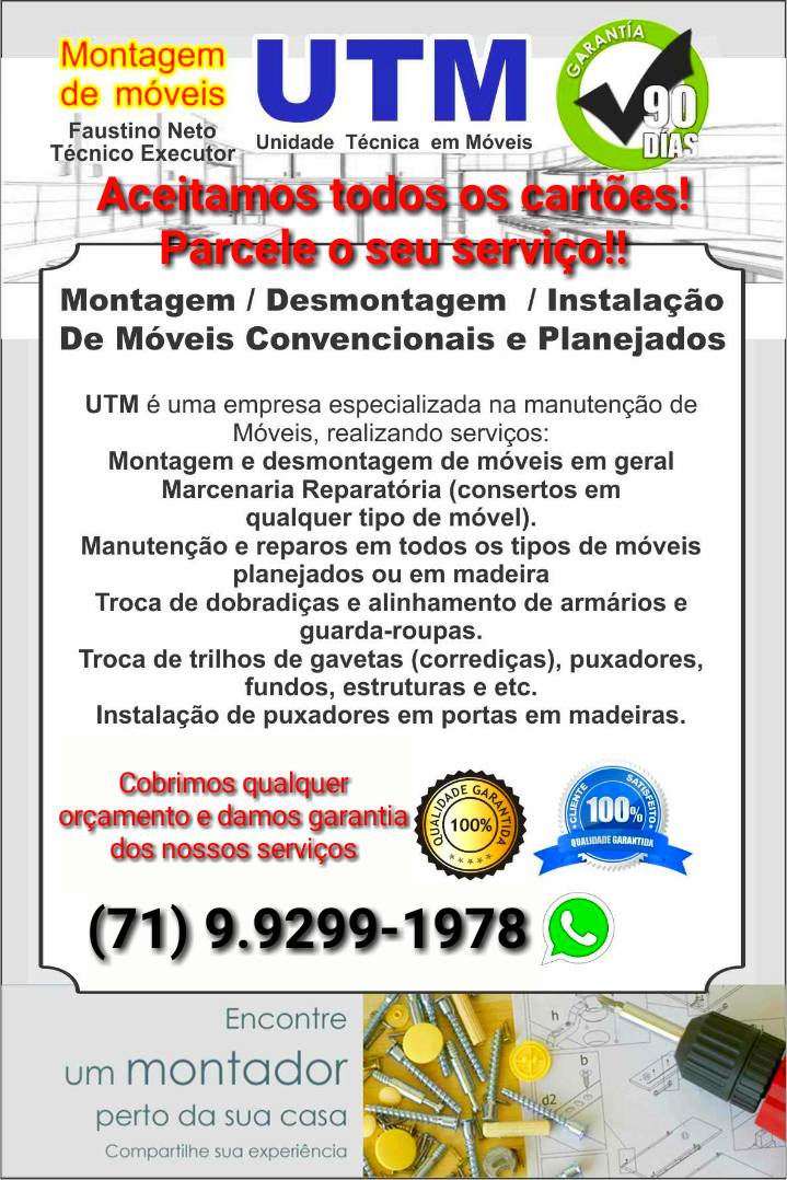 MONTAGENS E DESMONTAGENS *GUARDA ROUPA *CAMAS *BELICHES *PAINÉIS *ESCRIVANINHA *MÓVEIS DE BANHEIRO *FIXAÇÕES EM PAREDES *PEQUENOS REPAROS (TROCA DE CORREDIÇAS, DOBRADIÇAS E PUXADORES) *MÓVEIS EM GERAL ACEITAMOS CARTÕES TRABALHAMOS DE DOMINGO A DOMINGO DAS 9HRS À 18HRS (21 968282582 WHATSAPP