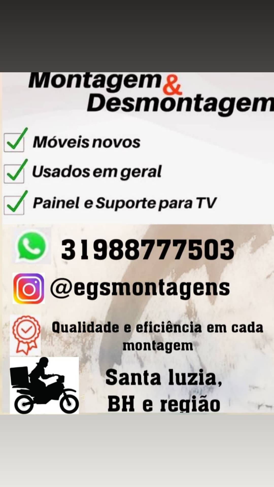 (11) 9 4080-103PROCURANDO MONTADOR DE MÓVEIS? COMPROU PELA INTERNET OU NA LOJA? VAI SE MUDAR E PRECISA DESMONTAR OS MÓVEIS? CHAMA NO WHATSAPP E FAÇA SEU ORÇAMENTO, TRABALHO COM QUALIDADE E PONTUALIDADE, INSTALO TVS EM SUPORTE, INSTALO CORTINAS, ETC... ATENDO BH E TODA REGIÃO METROPOLITANA @EGSMONTAGEN