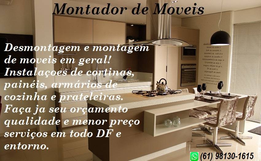 (61) 9 9156-1633MONTADOR DE MÓVEIS PROFISSIONAL! *VOCÊ ESTÁ PROCURANDO POR UM SERVIÇO DE QUALIDADE COM PREÇO JUSTO? (19)995795402 FLÁVIO *FAÇO MONTAGENS, DESMONTAGEM, MANUTENÇÃO E INSTALAÇÕES DE MÓVEIS EM GERAL. * QUALIDADE E GARANTIA PARA SEUS MÓVEIS. *FAÇA SEU ORÇAMENTO SEM COMPROMISSO, COM PREÇO JUSTO