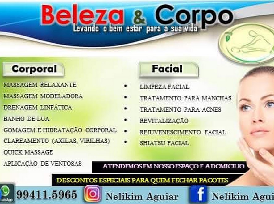 AMBIENTE CLIMATIZADO (AR CONDICIONADO QUENTE/FRIO). PROMOÇÃO R$ 130,00, 1 HORA DE MASSAGEM RELAXANTE OU TERAPÊUTICA.; AGENDAMENTO POR WHATSAPP; MASSAGEM TERAPÊUTICA, MASSAGEM RELAXANTE CORPORAL COM CREME, DEPILAÇÃO UNISSEX COM CERA OU MÁQUINA, CERA HIDROSSOLÚVEL, CERA ROLL-ON, MATERIAIS DESCARTÁVEIS; TODOS OS DIAS COM HORA MARCADA; ATENDIMENTO NO CONTINENTE, BAIRRO CAPOEIRAS, DIVISA COM ESTREITO.